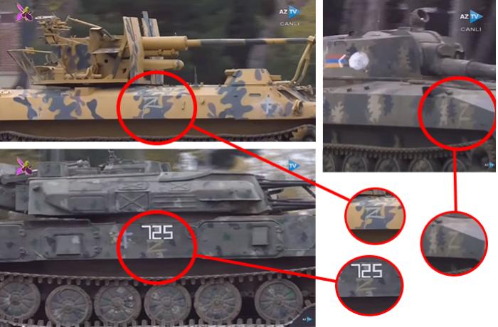 10 dekabr 2020-ci ildə Bakıda keçirilən Qələbə Paradından paylaşılan görüntülərdə qənimət olaraq ələ keçirilmiş bəzi erməni zirehli texnikalarının üzərində “Z” simvolları əks olunub. Rusiyanın iki il sonra eyni simvollardan istifadə etməsi yerli mətbuatın diqqətindən yayınmayıb.