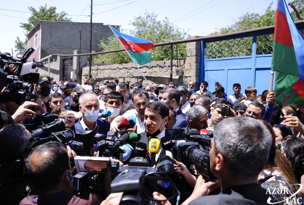 Şəhid jurnalistlərə Allahdan rəhmət diləyən Hikmət Hacıyev deyib: “Mən Prezident İlham Əliyevin tapşırığına əsasən buradayam. İlk növbədə cənab Prezidentin, hörmətli Birinci vitse-prezident Mehriban xanım Əliyevanın adından mərhumun ailəsinə, yaxınlarına dərin hüznlə başsağlığı verirəm.