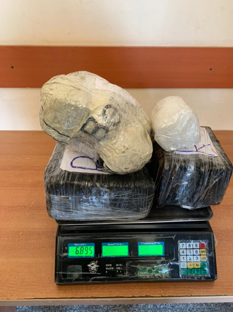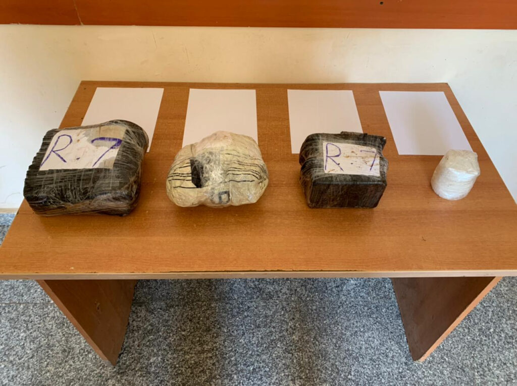 Əraziyə baxış zamanı sərhəd pozucularının qanunsuz yolla AR ərazisinə keçirdilkəri 1 ədəd çantada təxmini çəkisi 6895 qram narkotik vasitəyə bənzər maddələr (4065 qram – heroin, 1385 qram – tiryək, 325 qram – metamfetamin, 1000 ədəd metadon-40 həbi, 260 ədəd preqabalin) və dərman preparatları (10 ampula – ravit 8, 30 kapsula – wellman, 10 ampula – testosterone) aşkar olunaraq götürülüb.