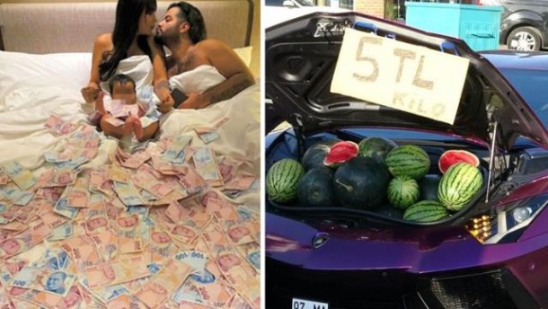 Hokm.az xəbər verir ki, bir müddət əvvəl lüks avtomobilində qarpız satan iranlı paylaşdığı foto ilə gündəm yaratmışdı. Daha sonra o, qazandığı pulları yatağa tökərək, pullu olmasını və ailəsini ilə yataq pozası verməsi İranlıları qəzəbləndirib.