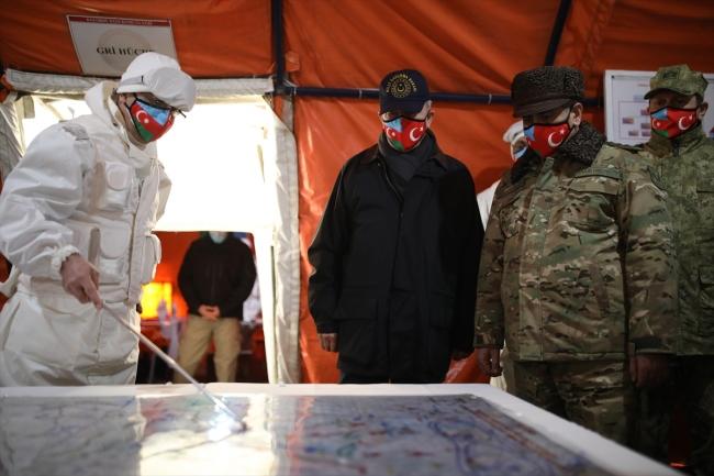 Azərbaycanın müdafiə naziri, general-polkovnik Zakir Həsənov və türkiyəli həmkarı Hulusi Akar təlimləri izləyirlər.