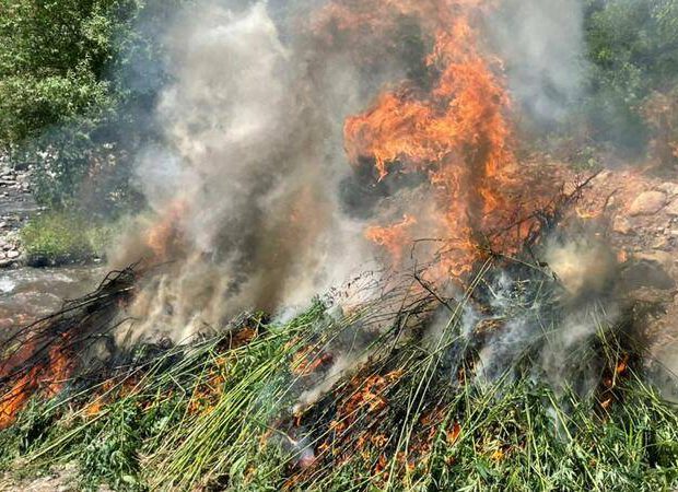 Daxili İşlər Nazirliyinin Mətbuat xidmətinin Bərdə regional qrupundan Hokm.az-a verilən məlumata görə, tədbir zamanı rayonun Ağalı kəndi ərazisində çəkisi 100 kiloqram olan 760 ədəd çətənə kolu yandırılaraq məhv edilib.